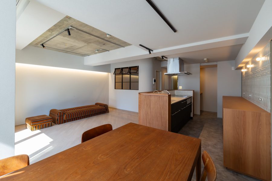 今回のお住まいは、比較的築年数が浅いマンションという建物条件を活かしながら、フルリノベーションではなく、既存の2部屋を残す形で計画した部分リノベーションです。構造壁の制約がある中でも、既存の良さを活かしつつ、LDKや玄関、水まわりといった、暮らしの印象を大きく左右する場所に設計の力を集中させました。