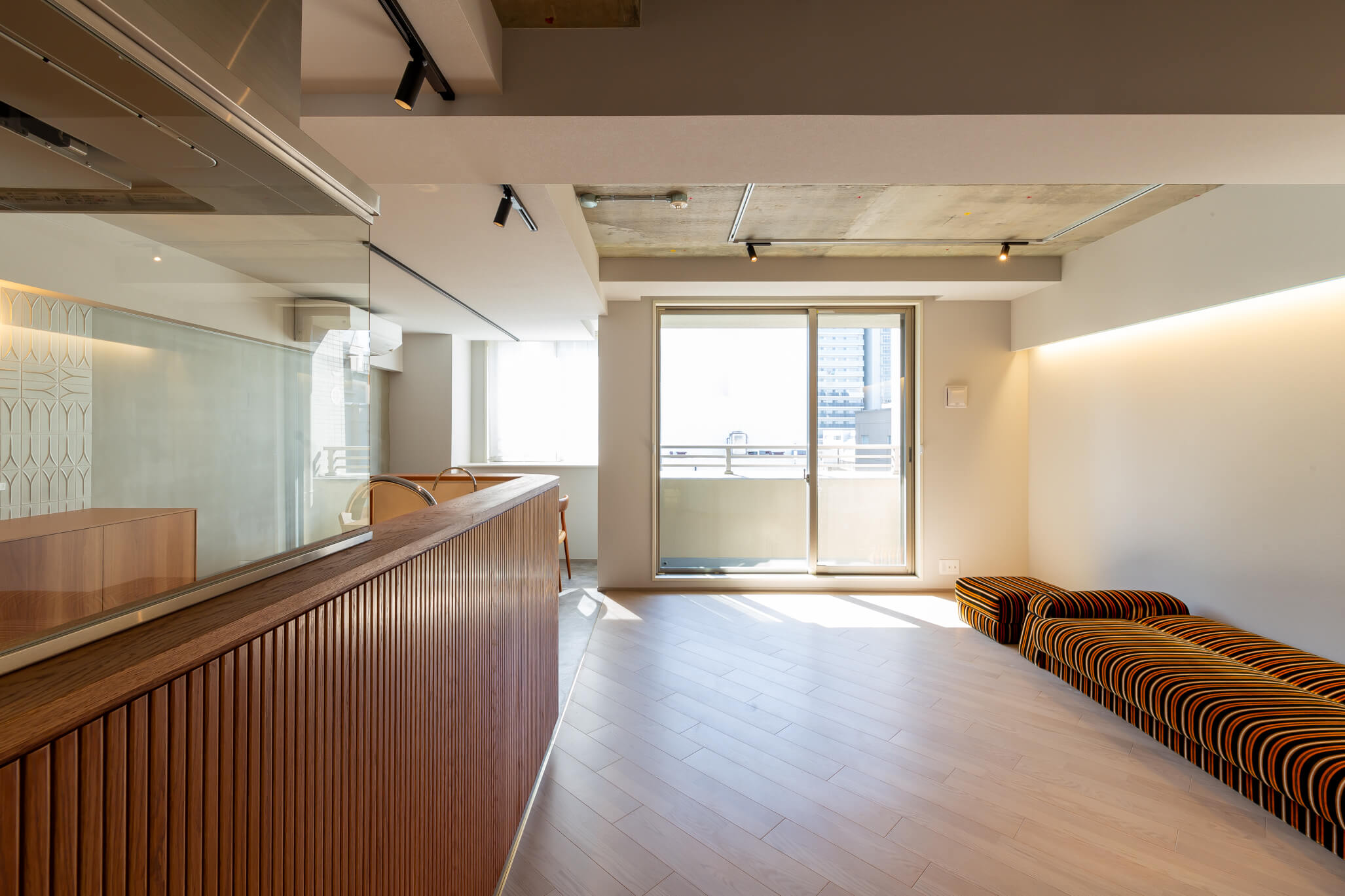 今回のお住まいは、比較的築年数が浅いマンションという建物条件を活かしながら、フルリノベーションではなく、既存の2部屋を残す形で計画した部分リノベーションです。構造壁の制約がある中でも、既存の良さを活かしつつ、LDKや玄関、水まわりといった、暮らしの印象を大きく左右する場所に設計の力を集中させました。