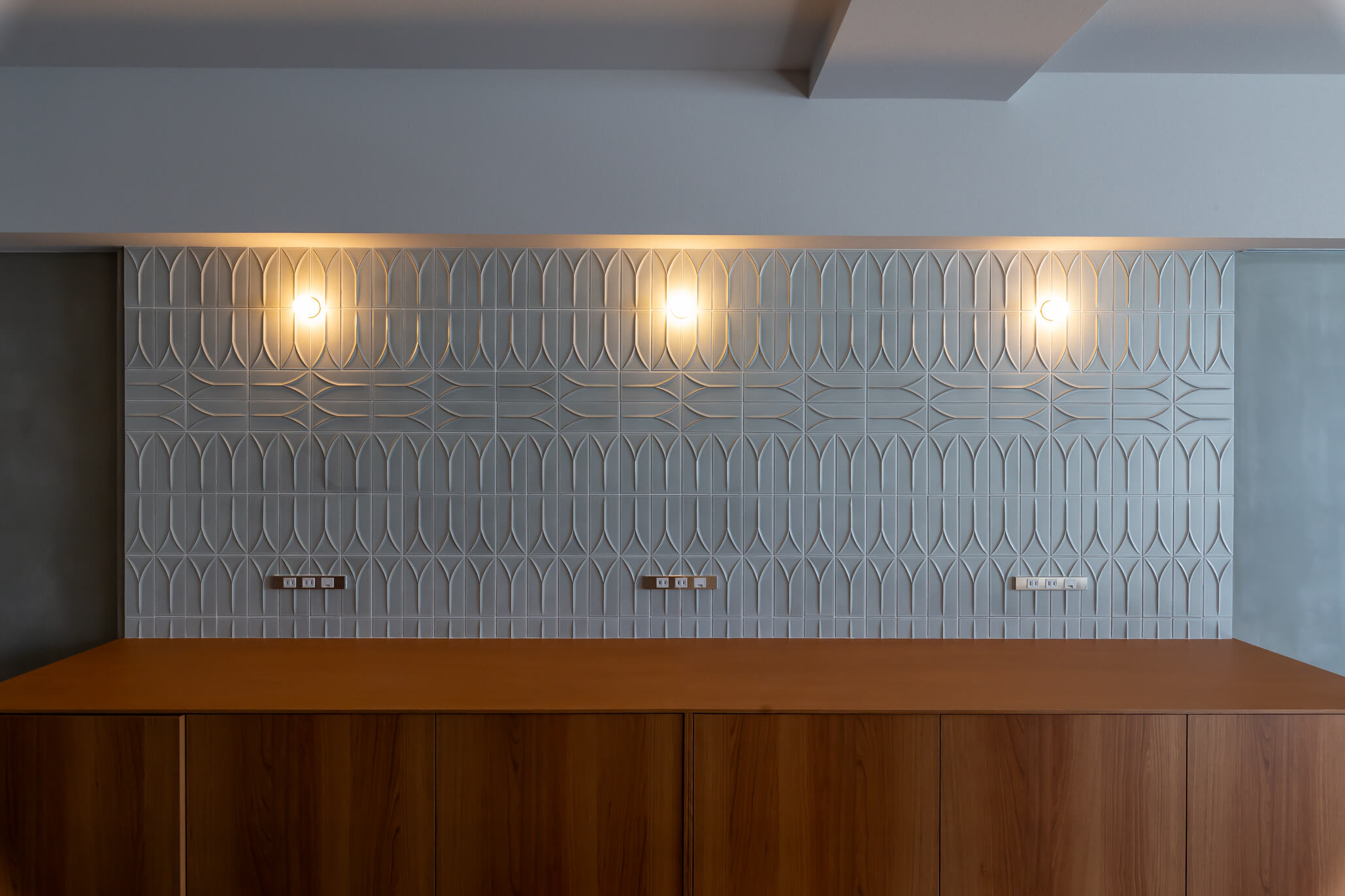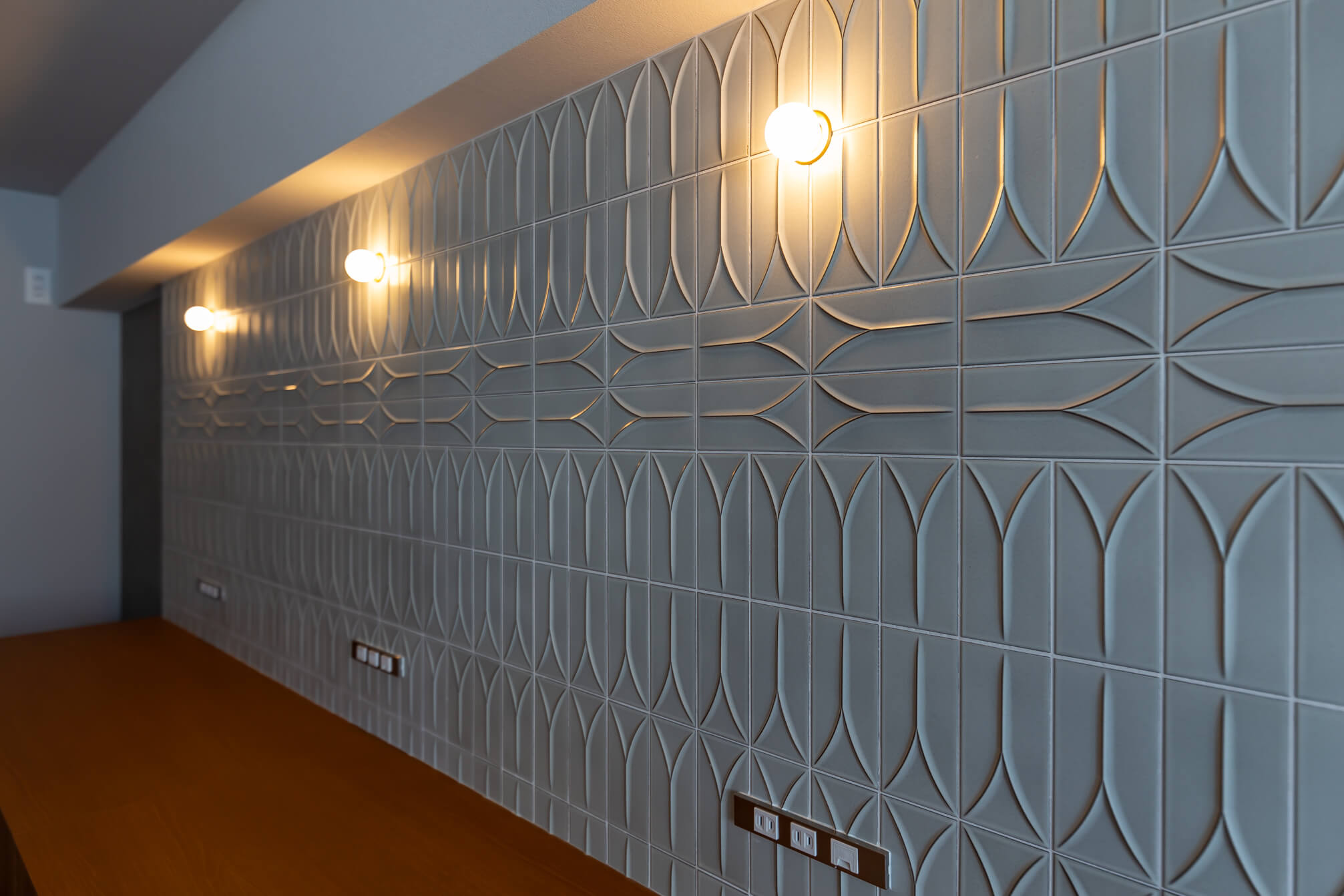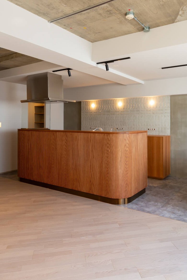 アーチ壁や間接照明、モルタル仕上げ、斜め貼りのフローリングなど、一つひとつは小さな要素ですが、それらを重ねることで、住宅でありながら店舗のような非日常感を感じられる空間を目指しました。