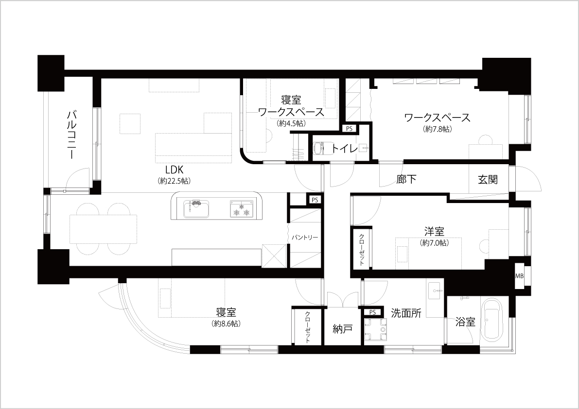 また、ご夫婦それぞれのワークスペースを設けることで、在宅ワークを含めた、これからの暮らし方に合った住まいとなるよう計画しています。